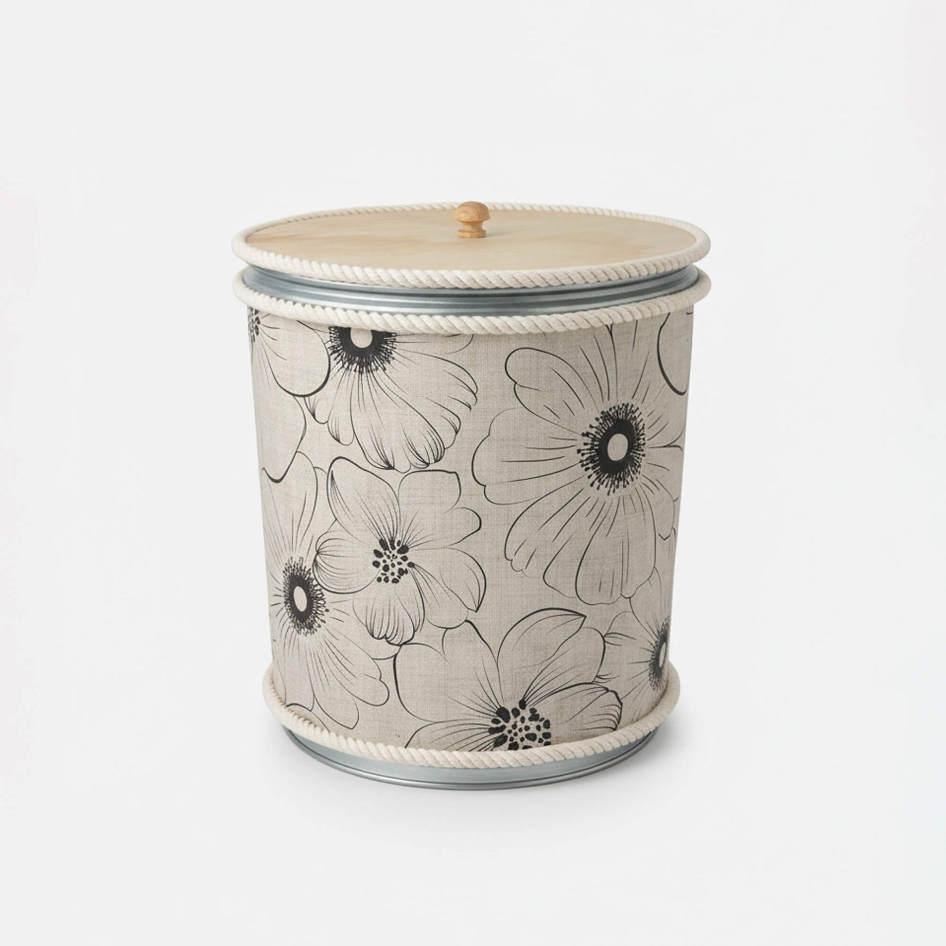 Su diseño con estampado floral en tonos neutros aporta un toque elegante y armonioso que se integra fácilmente en recámaras, baños o lavanderías. La tapa superior ayuda a mantener el contenido fuera de vista, logrando un ambiente más limpio y organizado.
